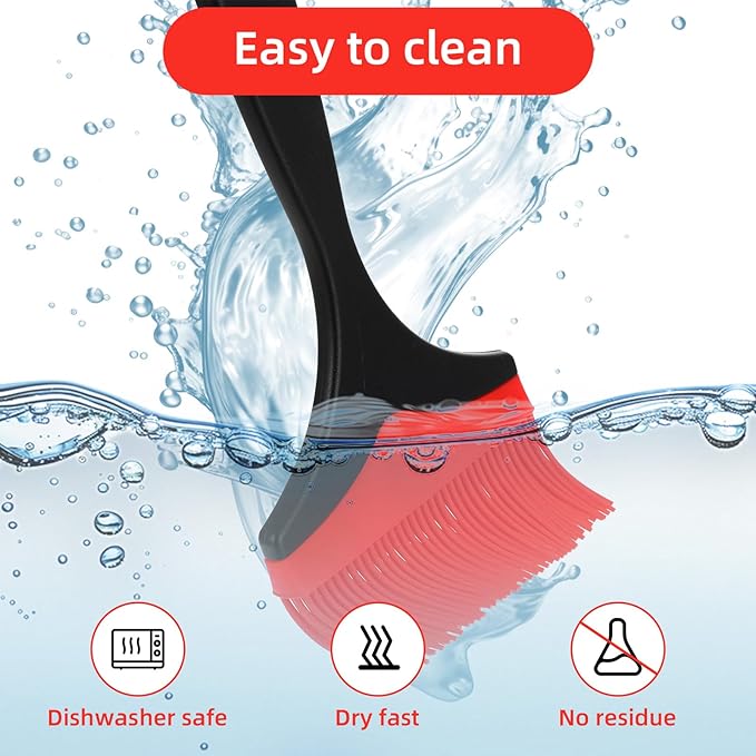 - Comfortable to Hold and Use: Compared to the traditional straight handle, the handle of this large butter brush is ergonomically designed, making it comfortable and firm for you to hold for a long time. The longer handle of this oil brush for cooking keeps your hands away from the flame, and there are 2 barbecue sauce brushes, so you can use different sauces at the same time when grilling. And butter brush is a hanging ring design on the top of the brush for easy storage