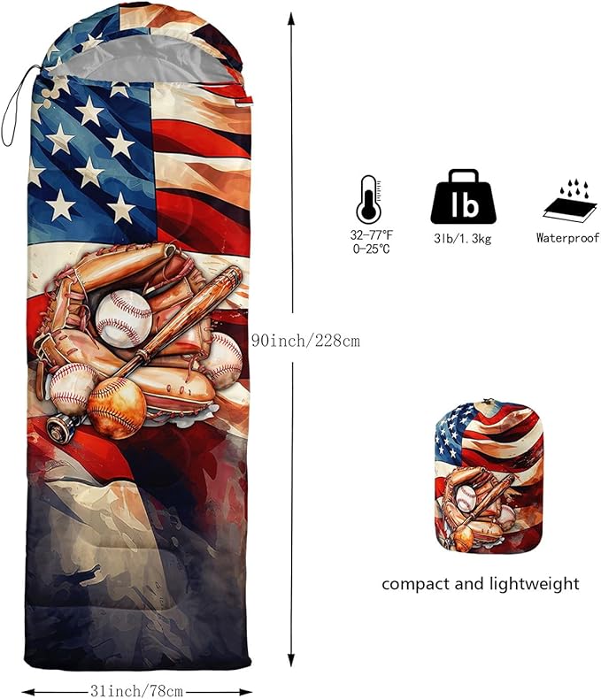 - SUITABLE:The sleeping bag can be used for 3 Seasons.SIZE:90.5"L x 31.5"W Suggenal extreme temperature: 41 ℉ -77 ℉.Applicable in a variety of scenarios,such as Travel camping pajamas party,It's very suitable for you to travel with your children.Half-circle hood with adjustable drawstring,which can keep you warm and prevent your humidity