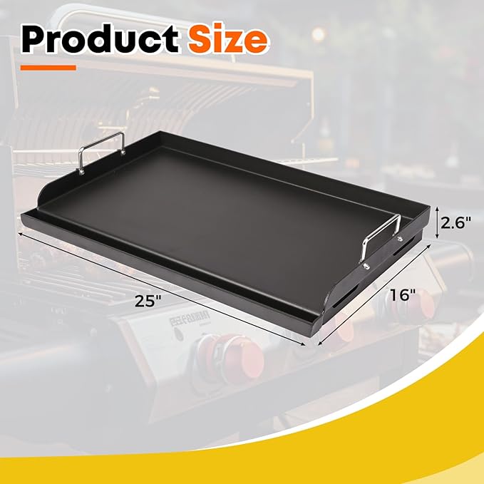 - 【Universal Compatibility】Product measures 25"x16" and fits most gas/charcoal grills for the Weber Spirit/Genesis/Smokefire series,Char-Broil,Nexgrill,Broil King and over 20 other brands.Ideal for camping,tailgating,backyard parties and teppanyaki style cooking