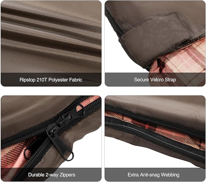 - Multi-purpose & Thoughtful Design: The full-open zipper design allows you to unzip it completely for more purposes, like quilts or blankets, or as 2 single sleeping bags. The zippers on both sides allow you to get in and out of the sleeping bag freely without waking your partner.