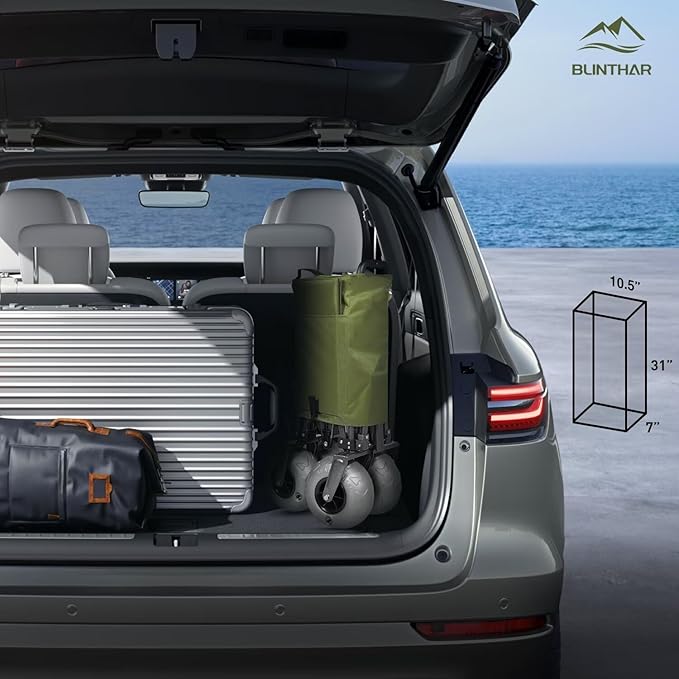 - 【Large Capacity】The BLINTHAR foldable wagon offers an expanded size of 35.4" x 19.7" x 23.6"; Balloon Wheel Size: 9" x 4"; Inner Dimensions: 35.4" x 18.1" x 13". When folded, it measures just 10.5" x 7" x 31", making it easy to fit into any car.Retractable handle telescopes up to a height of 37.5" for pulling comfort and ease of use.