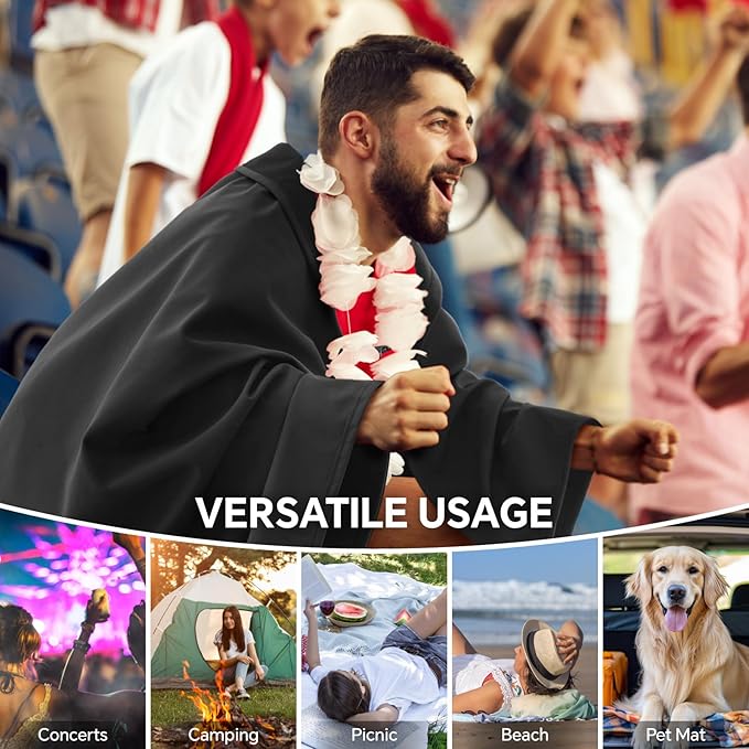 - Spacious & Versatile Size: 55x80 inches—large enough to wrap up to 2 adults or provides seating for 3-4 adults when placed on the ground. Perfect for camping, concerts, or as a cozy car blanket.