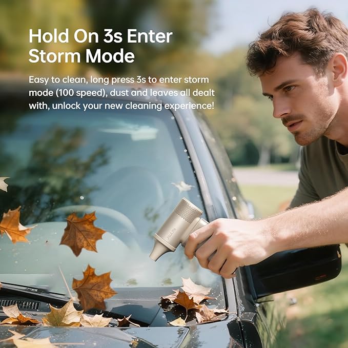 - 100 Speed Hurricane: Portable fan has powerful 1-100 adjustable wind speeds, 43000 RPM ultra motor, max wind speed reach 17 m/s. Press and hold for 3s into 100 speed, activate Storm Mode! Release to restore the original speed. Easy to operate, adjusted by a scroll wheel, this personal fan can be customized for cooling tailored to your needs.
