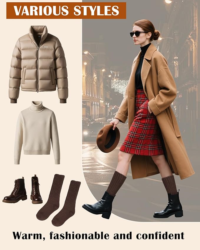 - Versatility and Fashion: Winter socks for women are great for various occasions, from daily commutes to outdoor hikes; Warm socks for women can easily pair with various boots, casual shoes or sneakers allowing you to showcase your style in any setting