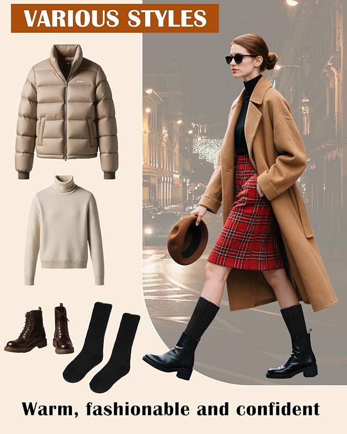 - Versatility and Fashion: Winter socks for women are great for various occasions, from daily commutes to outdoor hikes; Warm socks for women can easily pair with various boots, casual shoes or sneakers allowing you to showcase your style in any setting