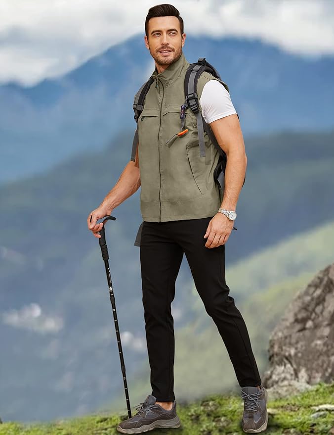 - Features: Multi-pockets hiking vest for men, 2 bust pockets, 2 side pockets, 2 inner pockets, summer outdoor fishing hunting vest.