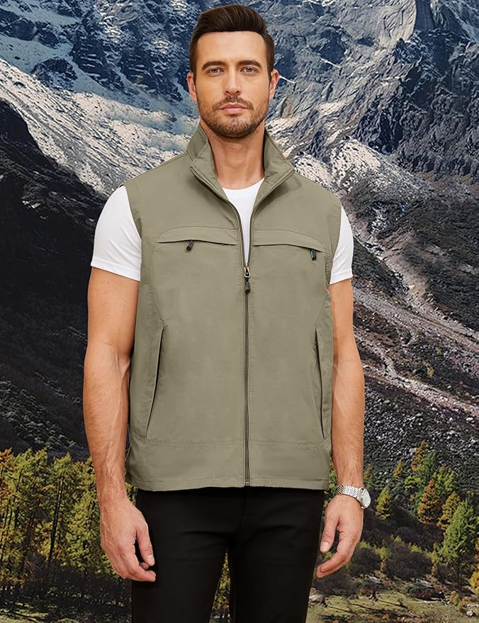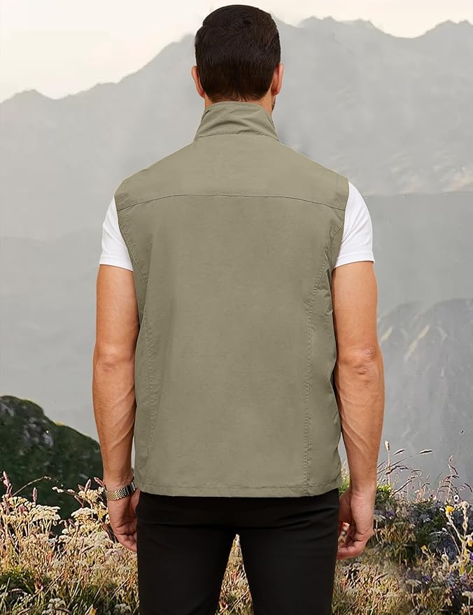 Gihuo Mens Casual Lightweight Travel Vest Summer Utility Safari Vest Sleeveless Jackets for Travel Hiking Fishing