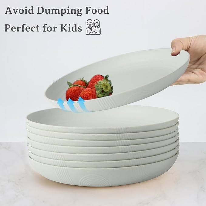 Wheat Straw Plates - 10 Inch Unbreakable Dinner Plates Set of 8 - Dishwasher & Microwave Safe Plastic Plates Reusable for Kitchen and Camping (Light Grey)