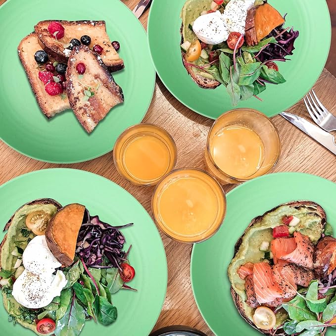 Wheat Straw Plates - 9 Inch Unbreakable Dinner Plates Set of 8 - Dishwasher & Microwave Safe Plastic Plates Reusable for Kitchen and Camping (Light Green)
