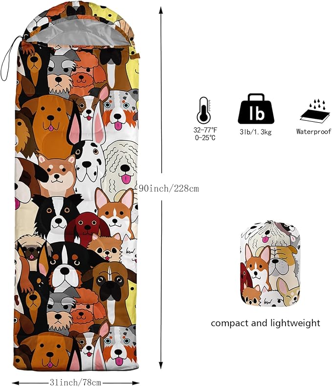 - 【Suitable for all seasons】 - This children's and adult camping sleeping bag is suitable for all seasons, with a comfortable temperature range of 32 ℉ -77 ℉ (0 ℃ -25 ℃). Even in cool weather, it can keep you warm and safe. Waterproof sleeping bags keep you warm in humid environments and prevent you from getting damp.