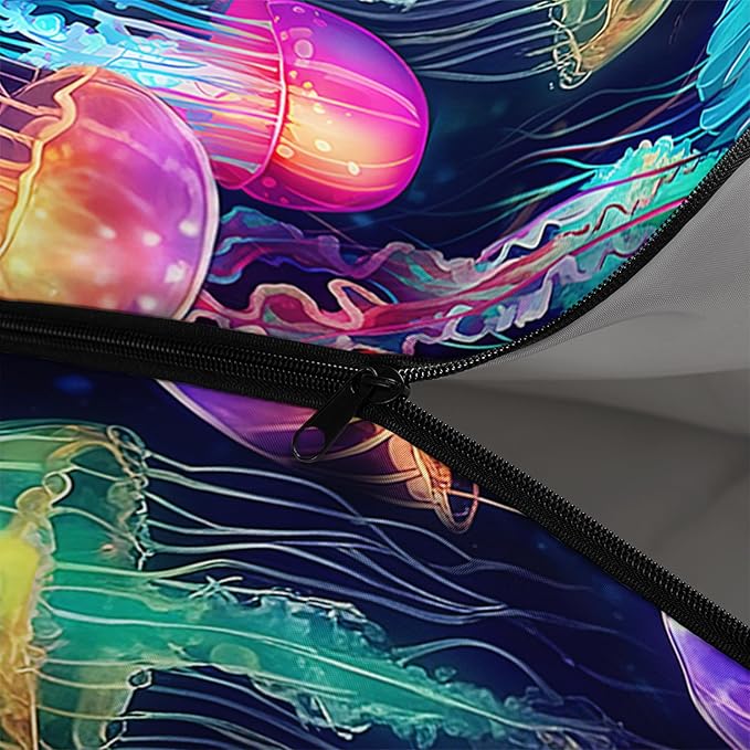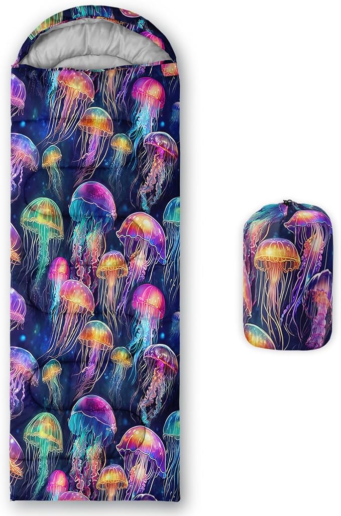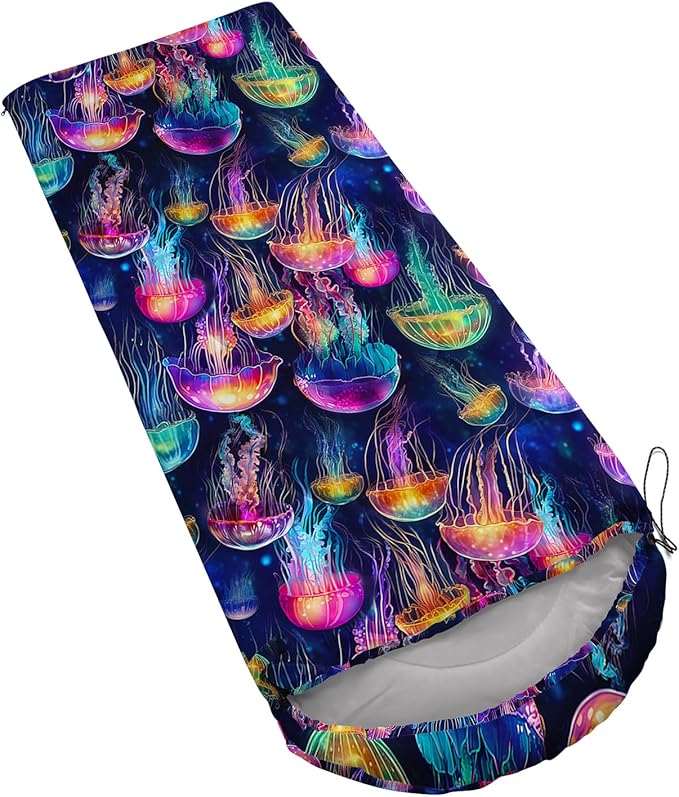 - 【Fashion Design】: This jellyfish for girl adopts 3D digital printing technology, with bright colors, suitable for room decoration. This sleeping bag features an adjustable drawstring design that allows for free adjustment of tension, making it easy to store. The zipper design of the sleeping bag makes it look like a blanket when opened. It can be used as a picnic mat and has a wide range of functions.