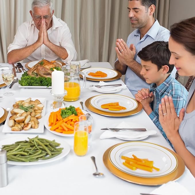 - Suitable for Any Place: The gold disposable tableware is suitable for plastic plates for party 200 guest birthdays, picnics, weddings, Thanksgiving, Christmas, Thanksgiving,Easter and more. It's a perfect gift for anyone who enjoys easy entertaining