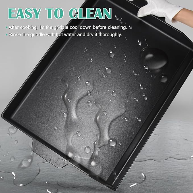 - ► Easy To Clean - Our flat top griddle replacement is made of cast iron, so cleaning this griddle plate requires special attention to avoid damaging the seasoned surface. After cooking, let the griddle cool down before cleaning. Next, wipe away any leftover food particles. You can use a paper towel or a plastic food scraper for this. Avoid using soap or detergent as it can strip away the seasoning. Rinse the griddle with hot water and dry it thoroughly. If necessary, apply a thin layer of cooking oil to the surface to prevent rusting.