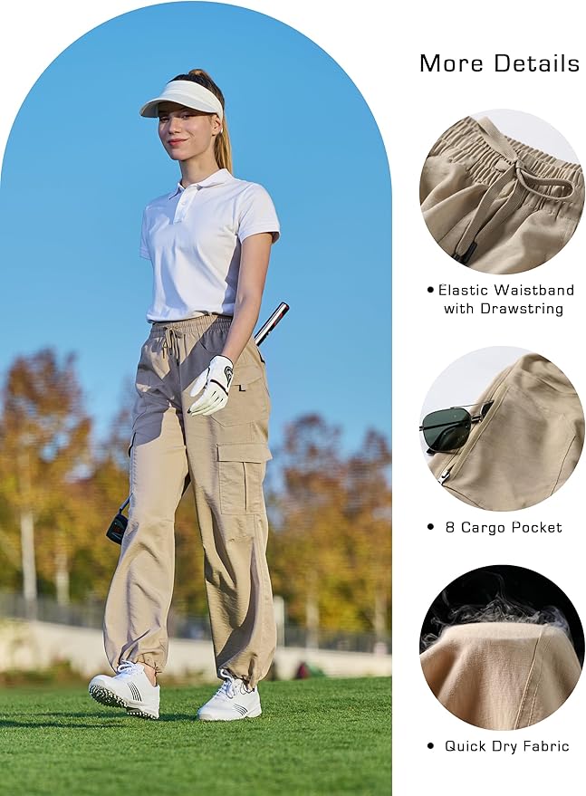 Women's Cargo Hiking Pants Lightweight Casual Quick Dry Straight Leg Camping Travel Pant for Work Golf with Multi-Pocket