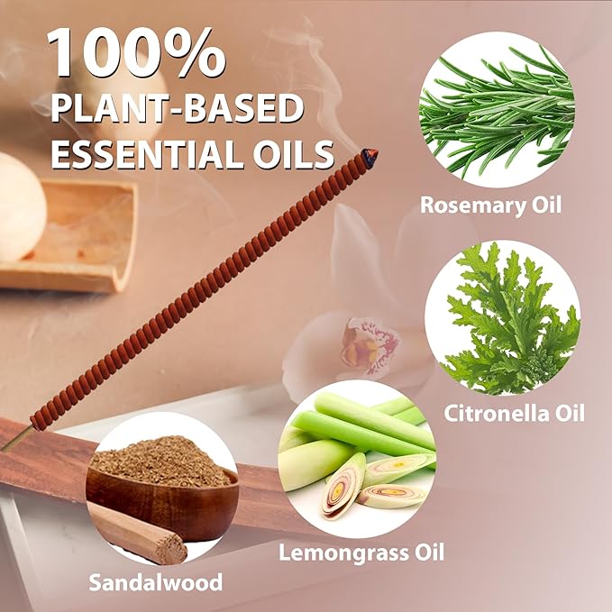 - NATURAL INCENSE STICKS: The main active ingredients of our natural mosquito repellent incense is plant-based essential oils like Rosemary, Lemongrass and Citronella. This DEET-free citronella incense stick without chemicals is non-toxic and friendly to pets, human and plants when used as directed. These bug repellent outdoors will build up a mosquito barrier so as to protect you and your family from mosquito bites.