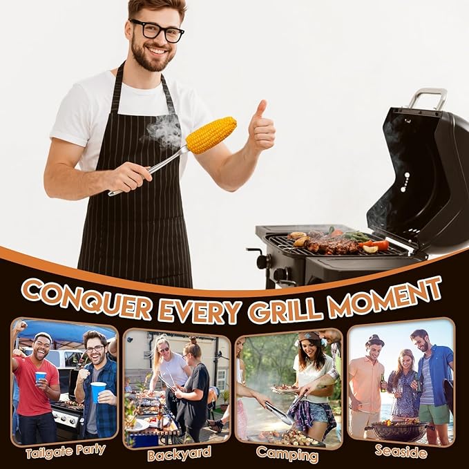 - [Versatile Grilling Accessories] Our BBQ tools are designed to work with all grill types, including gas, charcoal, electric, infrared, and more. Whether you're cooking indoors or outdoors, this reliable grilling set ensures superior performance across all grill surfaces, making it an essential addition to your BBQ arsenal
