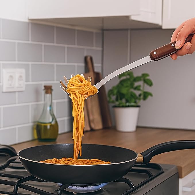 - Solid Kitchen Utensils: Wooden handle combined with polished mirror 304 stainless steel,combines sturdiness and aesthetics, the production process is more complicated, but it's worth it