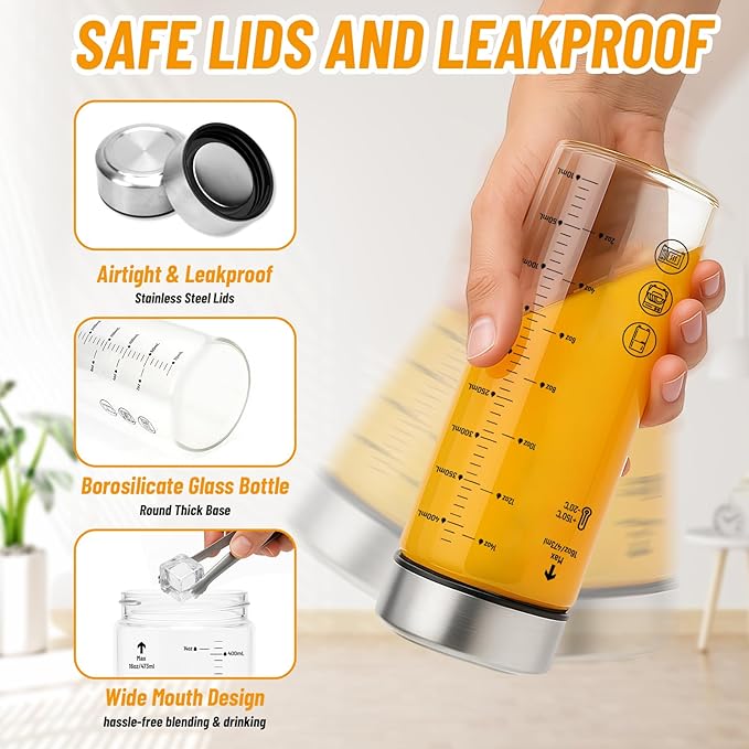 - Premium Borosilicate Glass & Durable:Crafted from high-quality borosilicate glass, our 12oz juice bottles resist thermal shock and cracking. Crystal clear and odor-free, they keep your beverages fresh and pure—perfect for juicing, smoothies, or cold brew coffee
