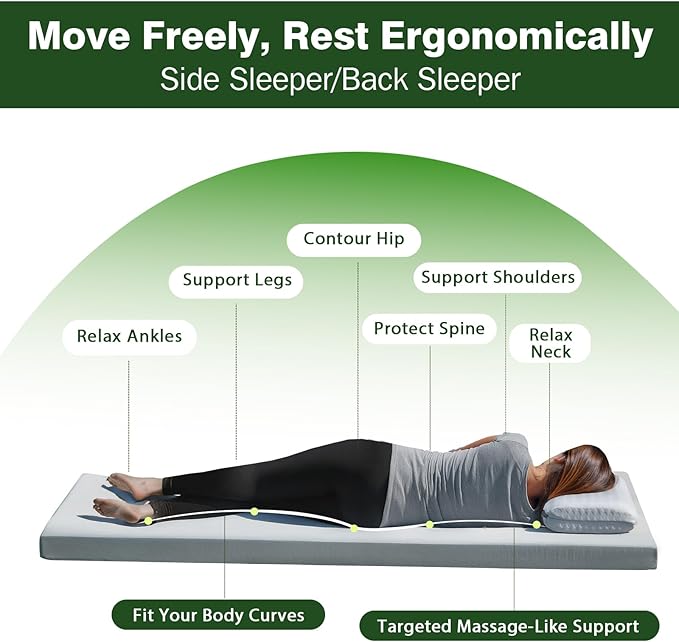 - [Skin-Friendly Fabric & Anti-Slip Bottom] The surface of the pad is made from high-quality polyester fiber, offering a soft, skin-friendly feel for a more comfortable sleeping experience whether you're back or side sleeper. The bottom is crafted with dotted plastic fabric, providing excellent waterproof and anti-slip properties, stays stable and prevents sliding.