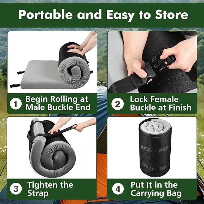 - [Innovative Convenient Storage] Our cot mattress features an innovative and more convenient storage design. After rolling up the pad, simply secure it with the buckle straps and then tighten it with the cord, eliminating the hassle of struggling to roll it up or dealing with loose straps. Whether for outdoor camping or home storage, the storage process is made simple and efficient.
