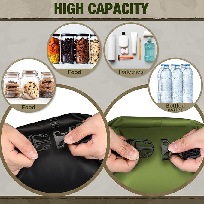 - Bear Food Bag Hanging System: includes 2 bear food bags respectively in black and green, 4 sturdy nylon ropes in 2 colors, namely black and army green, 4 clips in black, and 2 rock pouches in black; The package ensures you have everything you need for a convenient and efficient setup