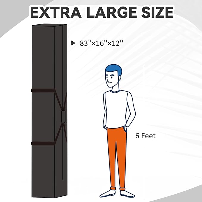 - Sturdy Material: the 83 inch duffel bag is made of 600D Oxford cloth, which is strong, waterproof, durable and tear-resistant; The shoulder straps with comfortable padding help to improve the overall sturdiness while ensuring a pleasant user experience even after long-term use; Note: Oxford fabrics are usually plain or checkered weaves, and there may be slight differences in yarn density in different areas, resulting in inconsistent light transmission; Do not expose to sunlight for a long time