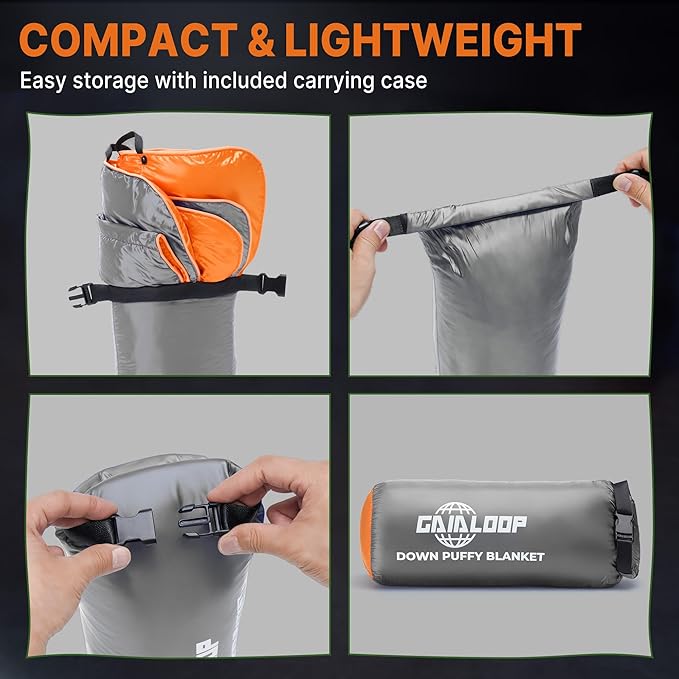 - 【80% Duck Down Filling: Soft & Comfortable】GAIALOOP Down Puffy Blanket is filled with 80% gray duck down and 20% feather using compartmentalized filling technology. We fill every cell on the down blanket as evenly as possible to make sure each cell is fluffy, soft, and comfortable.