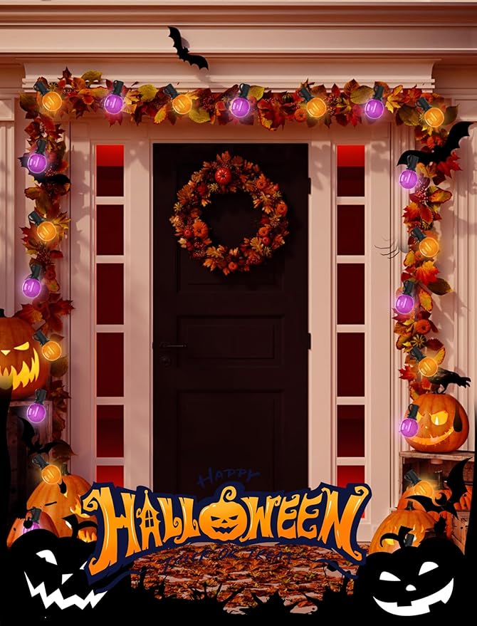 Abeja Halloween G40 LED String Light, Orange Purple Halloween Lights Outdoor with 27 LED Shatterproof Clear Lights Bulbs(2 Spare) for Patio Balcony Backyard Pergola Decor