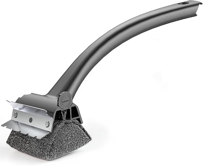 - 【2-in-1 BBQ Brush】The scraper easily removes tough stains and food residue from the grill. The detachable brush head can be easily removed and placed in the dishwasher for cleaning.