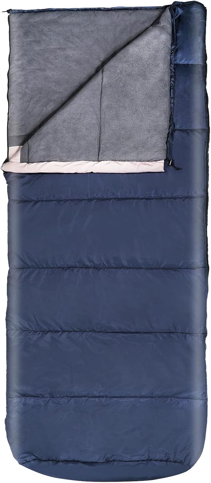 - Premium Comfort & Warmth: Enjoy cozy nights with the quarter-length soft fleece lining that boosts comfort and heat retention. Filled with 2lbs of lightweight, imitation silk cotton, this sleeping bag keeps you warm in temperatures ranging from 41℉/5℃ to 59℉/15℃—perfect for cool spring nights or mild autumn adventures.