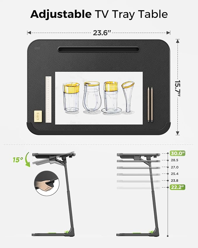- Effortless Height & Angle Adjustment: Smoothly raise the desktop to adjust the height(22.2"-30") even with items on it;Pull the lever to adjust the angle (0-90°) without needing to stand up from your sofa, providing a seamless user experience