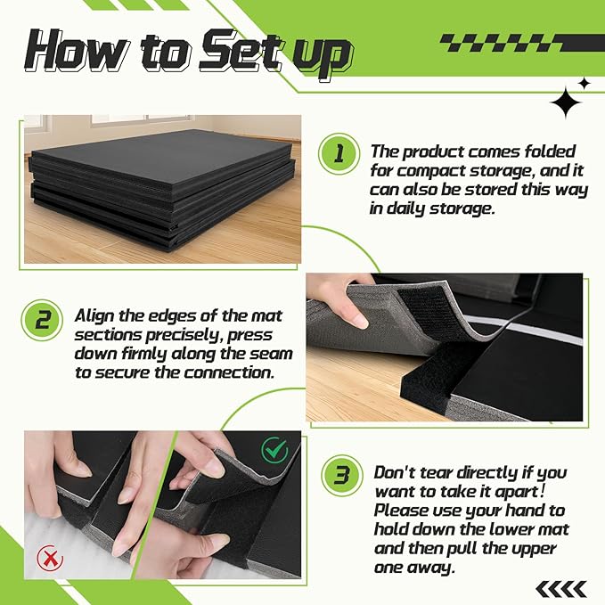 - Modular Connection: Simply align the edge of the gymnastics mat and press firmly along the seams to complete assembly. Whether for small home gyms or larger training venues, the unique connecting edges ensure tight fitting without shifting or gaps during training, guaranteeing an uninterrupted experience.
