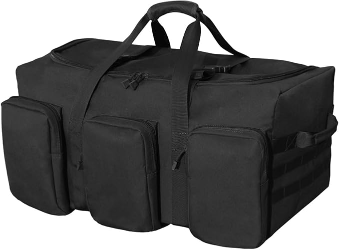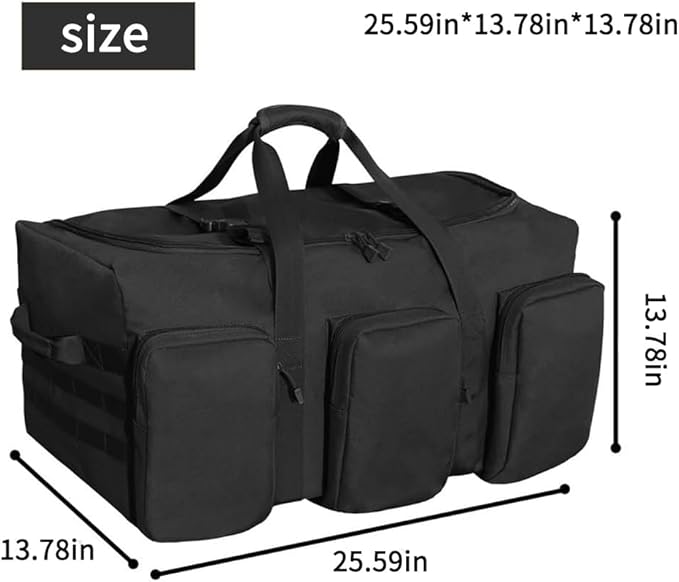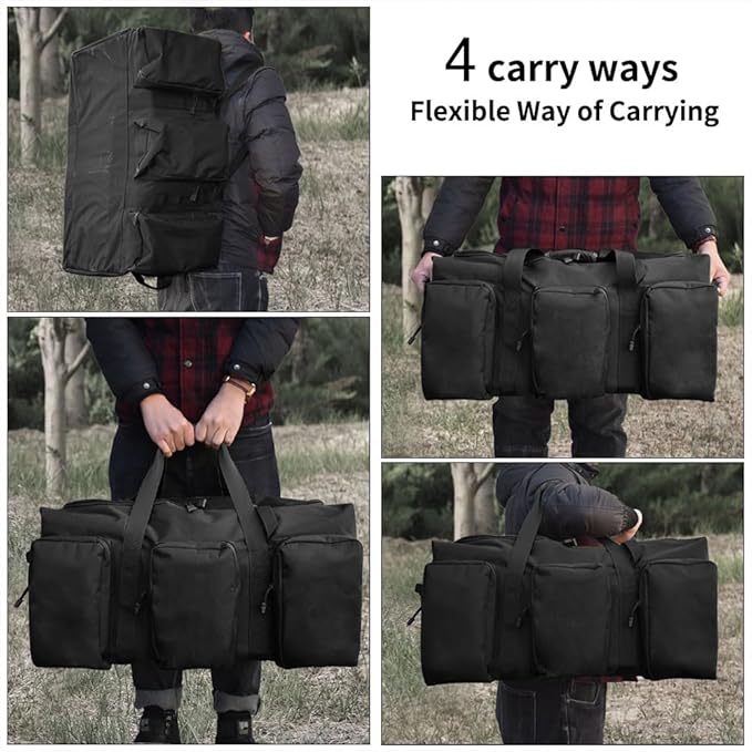 Large Military Travel Duffle Bag Tactical Camping Storage Utility Tote Bag Camping Kitchen Organizer with Deployment Cargo Bag Travel Sports Equipment (Black, Large 25.59"x13.78"x13.78")