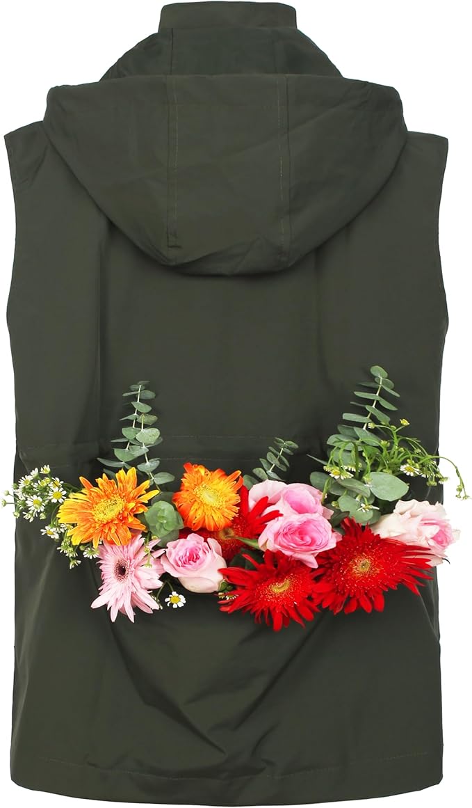 - Women Military Jacket Vest Features: This fashion vest is with zipper in front and snap buttons decoration, six pockets in the front, a packable pocket on the back, adjustable drawstring in the waist, turn down collar, light weight vest for women, button down vest, for all seasons