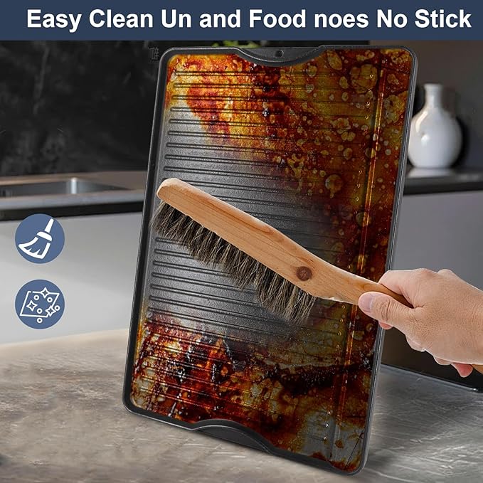 - 【Practical Choice】➤24 Inch Griddle Pan: The smooth side is designed for cooking eggs, pancakes, and bacon, while the ridged side is ideal for grilling steaks, burgers, fish, chicken, and vegetables. ➤Heavy Duty Cast Iron Griddle adopts a Dual Handle Design - XL Cast Iron Griddle have two easy-to-grip handles, enabling effortless lifting, flipping, and space-saving vertical storage when not in use.