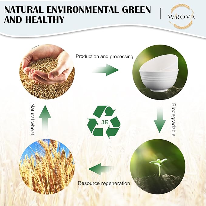 - γπππππ© ππ©π§ππ¬ π½π€π¬π‘π¨γWrova 26oz white bowl set of 8 is crafted from natural, non-toxic wheat straw fiber with no plastics or harmful chemicals. Create a healthy and conveniently dining experience for your family with these beautiful tableware pieces.