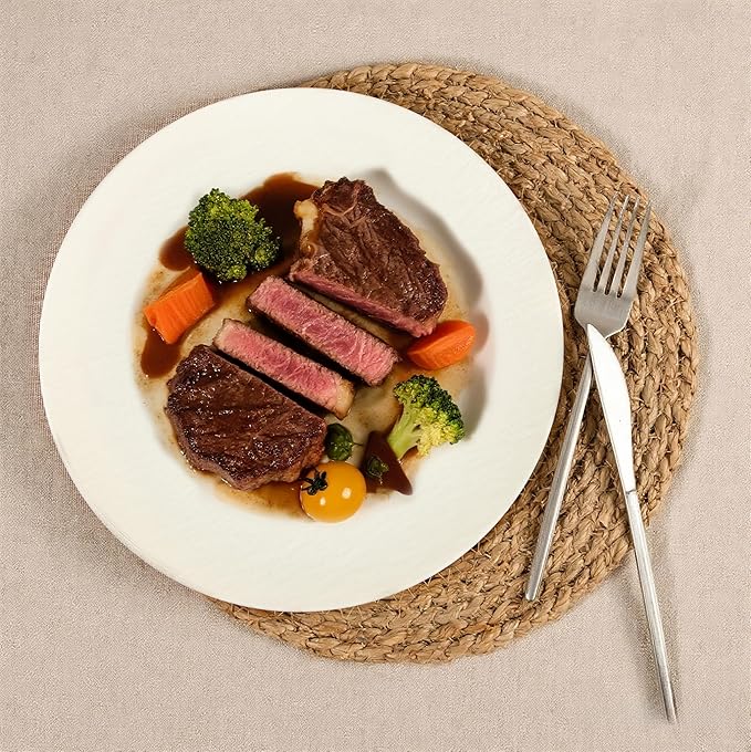 - EXQUISITE FROSTED DESIGN:Elegant ivory color with frosted stone texture exudes warmth.Plastic dinnerware set is perfect for daily dining,country-style picnics,or understated weddings,blending seamlessly with cozy,earthy decor.