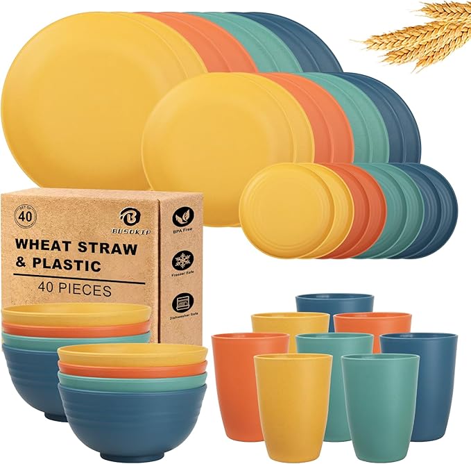 - PREMIUM WHEAT STRAW MATERIAL: These wheat straw dinnerware sets are made from practical wheat straw fiber and food-grade PP materials. They are non-toxic and 100% BPA-free, an ideal alternative to ceramic and glass dinnerware