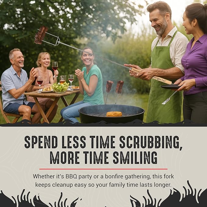 - BUILT FOR YEARS OF CAMPFIRE: Crafted from heat-resistant, corrosion-resistant 304 stainless steel with a durable wooden handle, our grilling fork withstands heat and chaos for years of use.