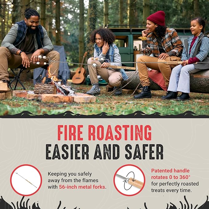 - SAFETY FIRST DESIGN: Engineered over six years, FireFork360 metal forks are 56-inches long, keeping you safely away from the flames—ideal for families and crowded bonfires.