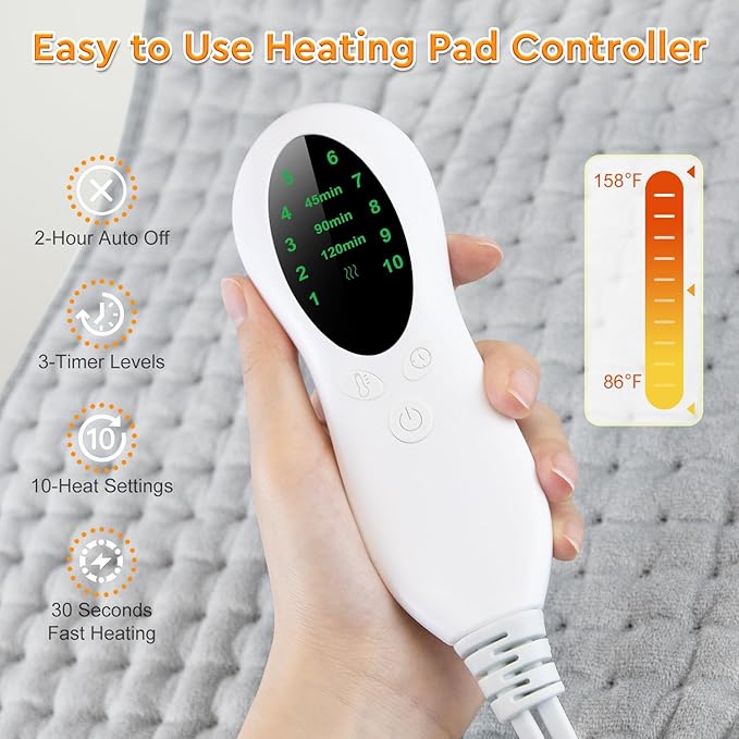 - 10 Heat Levels & Safety Design: The menstrual heating pad LED controller has 10 heating settings (86℉-158℉) and 3 timers (45/90/120 minutes), it heats up quickly in 30 seconds, allowing you to enjoy warmth faster. The ETL certified heat pad has built-in overheat protection to ensure maximum safety. Applicable voltage is 110-120V, rated power is 75W