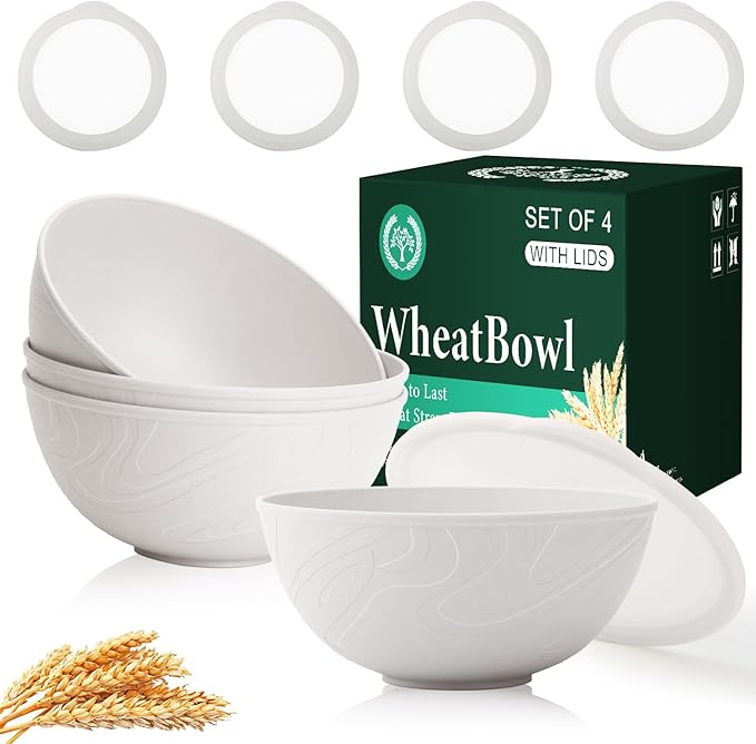 - PREMIUM WHEAT STRAW MATERIAL: Crafted from premium wheat straw fiber, this wheat straw bowls offers exceptional durability. The food-safe, non-toxic composition ensures daily use for families, with no harmful chemicals or lingering odors. Enjoy worry-free food storage for your family's daily meals, cereal, soup, salad, and leftovers