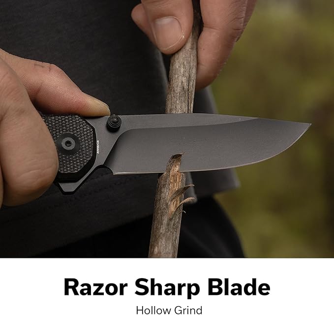 - 9Cr18MoV Blade with Hollow Grind: Crafted from durable 9Cr18MoV stainless steel with a hollow grind, this razor-sharp blade is well-suited for a variety of everyday cutting tasks