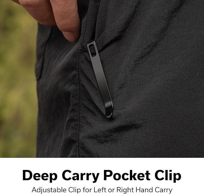 - Deep Carry Pocket Clip: The deep-carry pocket clip features an ambidextrous, adjustable design for convenient left- or right-handed carry