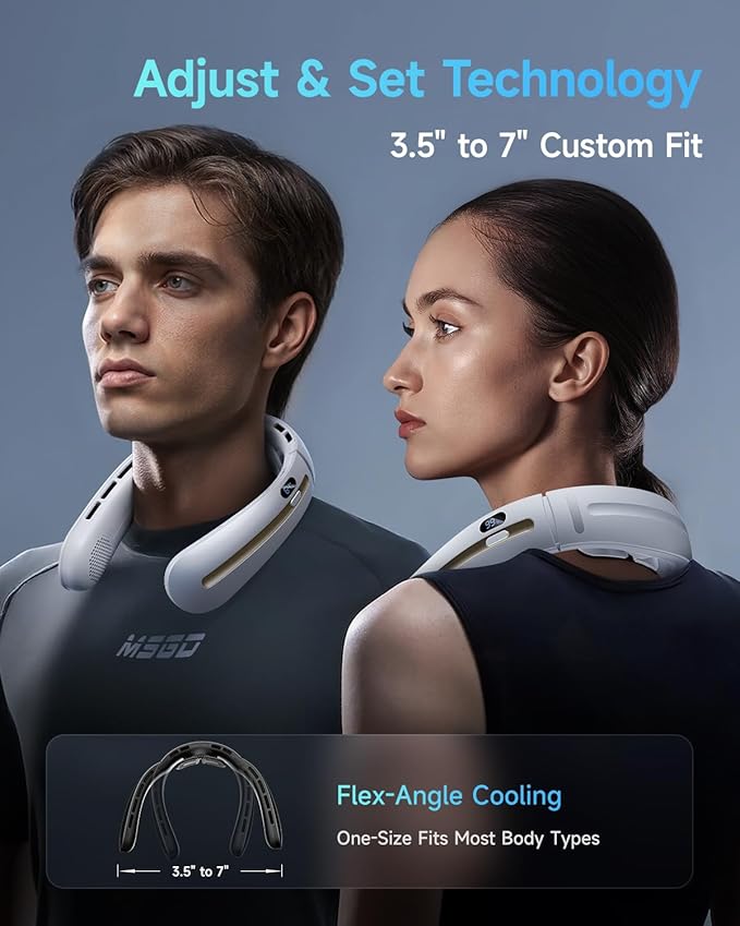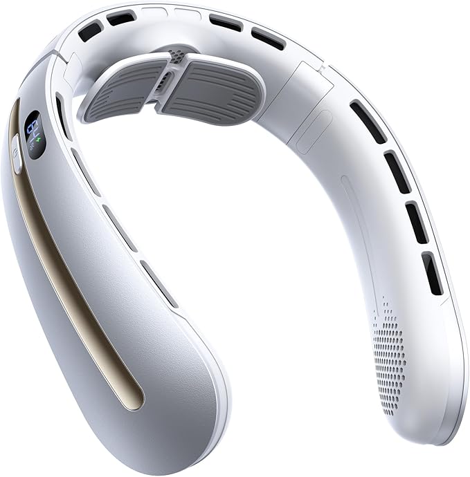 - Ergonomic Neck Support & Universal Fit: This wearable neck fan features a soft silicone neck brace designed to reduce fatigue and prevent sweating. Utilizing unique hinge technology, it fits various neck sizes, ensuring a comfortable, hands-free wearing.
