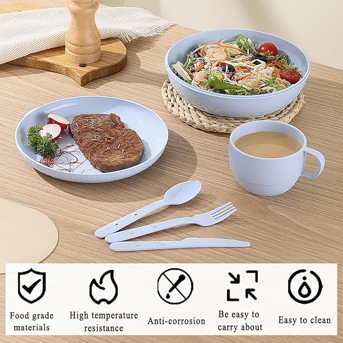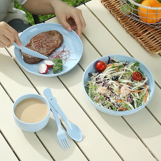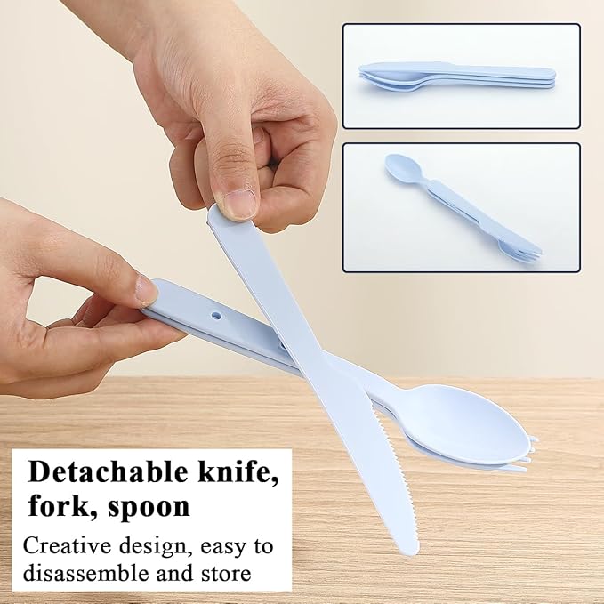 - 4. Comfortable to Use & Easy to Clean:With ergonomic handles that provide a comfortable grip, these utensils make eating outdoors a breeze. Plus, the smooth surfaces are dishwasher-safe, allowing for quick and hassle-free cleaning after every meal.