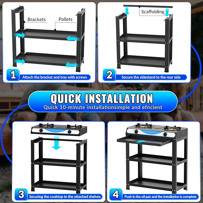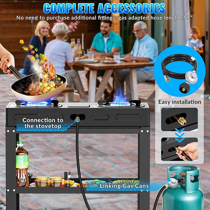 - 【User-Friendly Design】 - Designed for convenience, this outdoor stove can be assembled in under 10 minutes. It includes a removable stand, along with a CSA-certified gas regulator and hose, ensuring safe and easy operation.