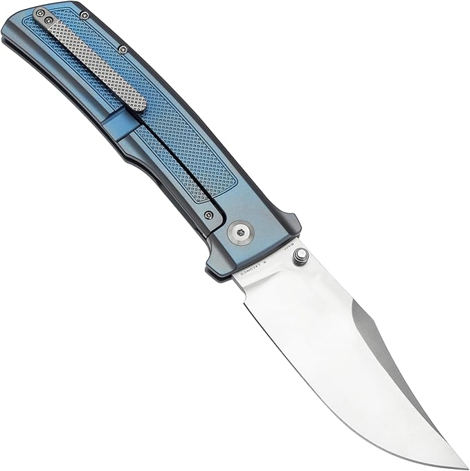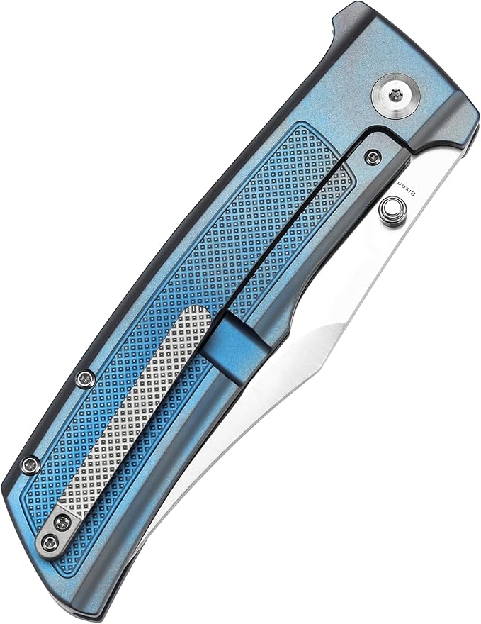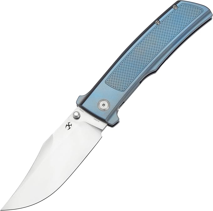 KANSEPT Bison Pocket Folding Knife, 4.25'' Satin CPM S35VN Steel Sharp Blade, Blue Anodized Titanium with Frag Pattern Handle, Frame Lock and Thumb Stud for Edc, Camping Hiking Knives K1108A2