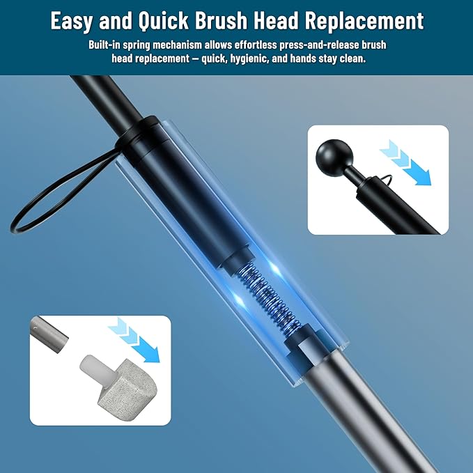 - Stainless Steel and Soft Grip Handle:The pumice stone toilet bowl cleaner is made of stainless steel handle that is stronger than traditional plastic toilet brushes,Meanwhile,the soft plastic sponge handle gives you a comfortable feeling and just perfect size for you hold when using