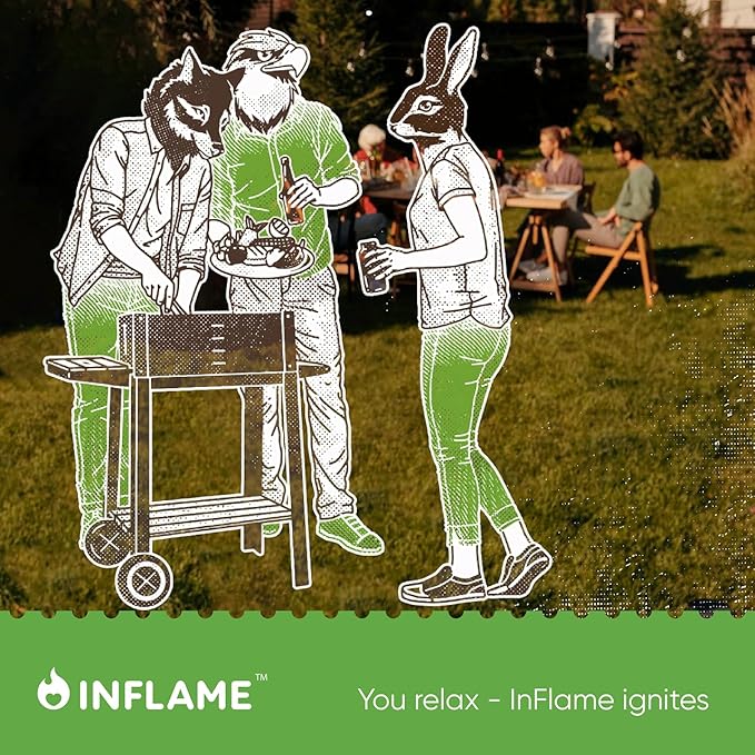 - Easy Fire: Take one or two Inflame firestarter from the box. Place starter under the wood or charcoal, and light each firestarter on the side of the piece.